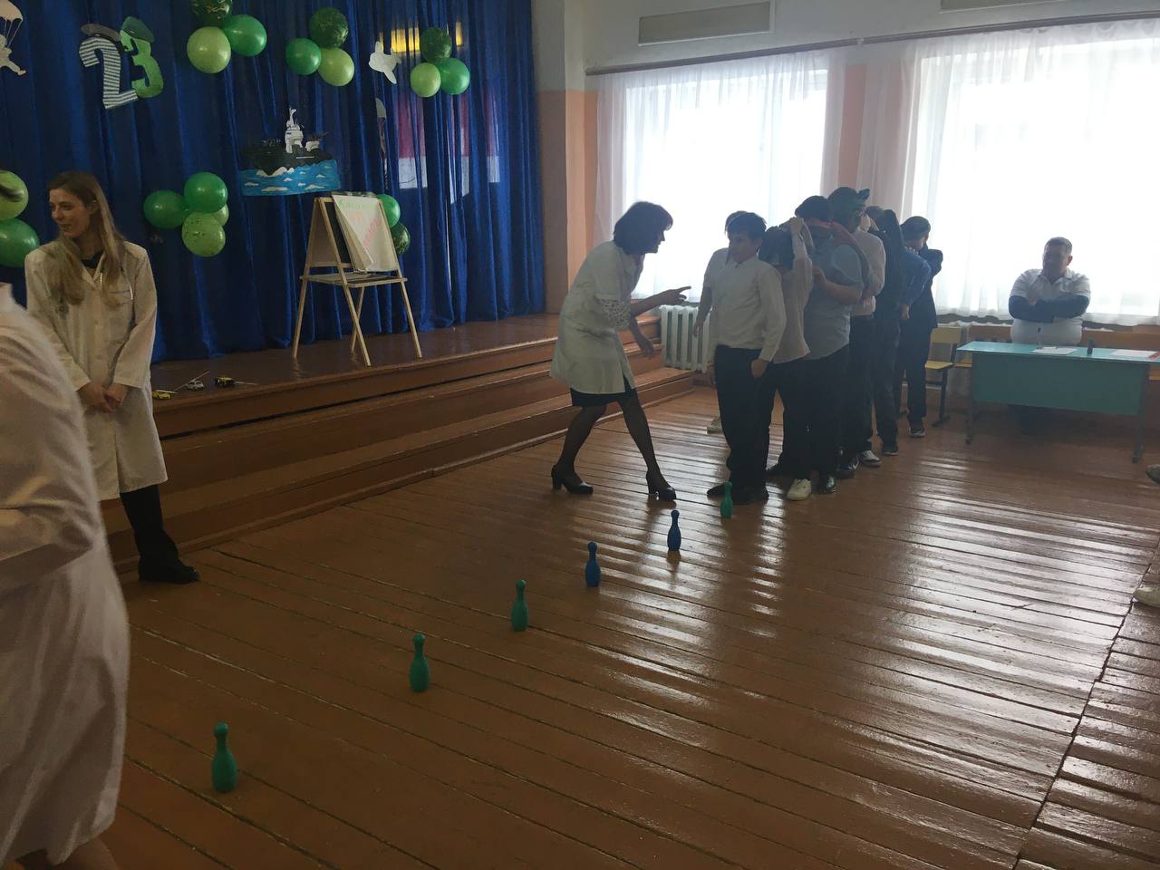 Учащиеся 5-7 классов на праздничном мероприятии прошли «Веселый медосмотр». Учащиеся побывали у следующих специалистов: педиатр, отоларинголог, невропатолог, психолог, ортопед. Для ребят были предложены задания, с которыми они все успешно справились. В конце «Медосмотра» все ребята получили витамины, сладкие призы и заключение, что здоровы.