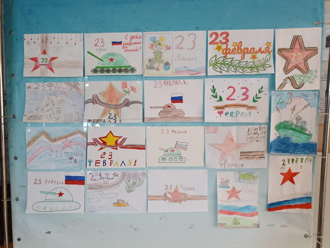 17 февраля в школе была оформлена выставка открыток на военную тематику. Открытки подготовили учащиеся 5-7 классов.