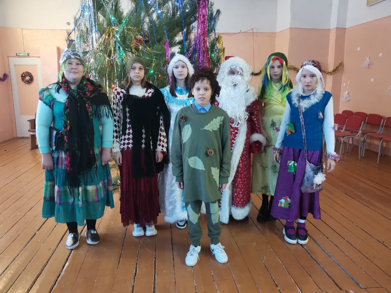 Самый любимый праздник, как взрослых, так и детей, конечно же, Новый год. Подготовка началась задолго до наступления праздников. Педагоги с детьми разучивали стихотворения, проводили беседы на тему Нового года, новогодних традиций, разучивали с учащимися песни и пляски. Дети в ожидании чудесного новогоднего праздника старались и ждали подарков. Огромную работу провели по оформлению зала, за это можем сказать СПАСИБО. В центре зала — украшенная ёлка. На мероприятия дети пришли нарядные, весёлые в предвкушении праздника. Учащиеся, участвовавшие в новогоднем представлении, проявили себя хорошими артистами, показав всё своё творческое мастерство, артистизм и организаторские способности. Им пришлось перевоплотиться в разных героев: Кикимору, Бабу Ягу, Снегурочку, Деда Мороза. С самого начала представления сказочные герои увлекли детей в волшебный мир сказки. Дети смогли окунуться в праздничную атмосферу приключений, поучаствовать в интересных конкурсах. С появлением Деда Мороза начался настоящий праздник с песнями и танцами. После представления дети читали стихи Деду Морозу и Снегурочке, фотографировались с персонажами, получали новогодние подарки.