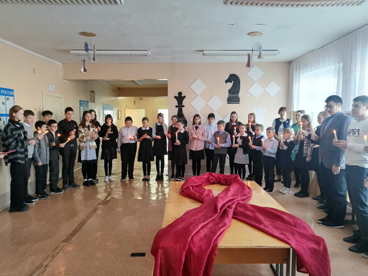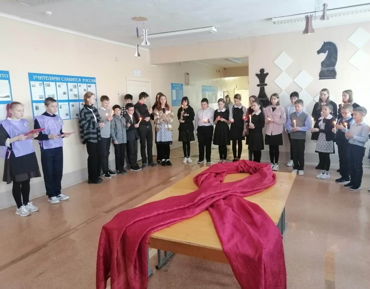 Учащиеся школьного отряда форпост «Профи» еще раз напомнили всем присутствующим на линейке о значении этой даты. Школьниками в знак солидарности и поддержки были зажжены свечи.