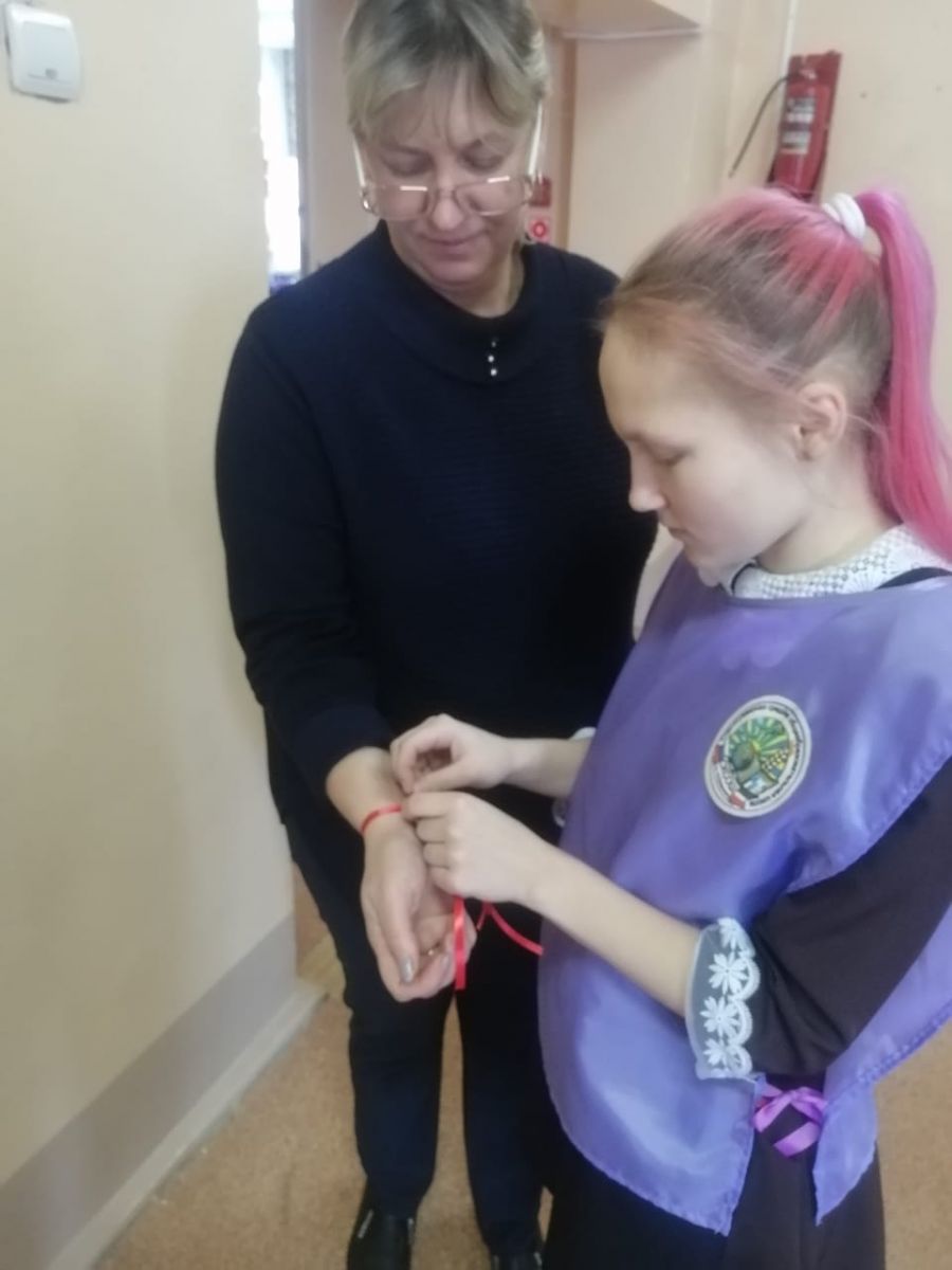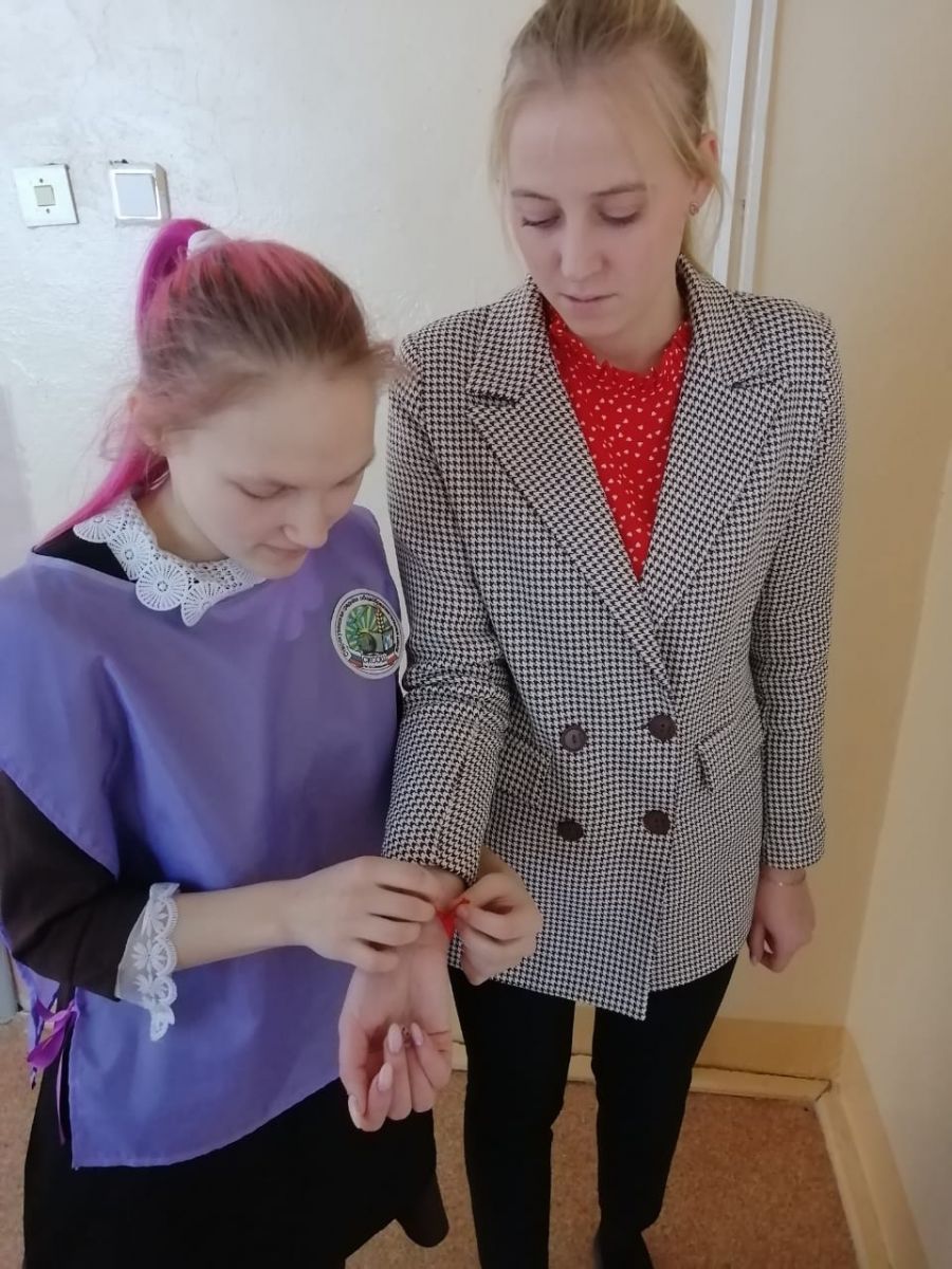 Так же учащимися отряда Форпост в школе была проведена акция «Количество свечек зависит от тебя». Педагогам и учащимся школы были завязаны красные ленточки на запястья в знак поддержки ВИЧ инфицированных.