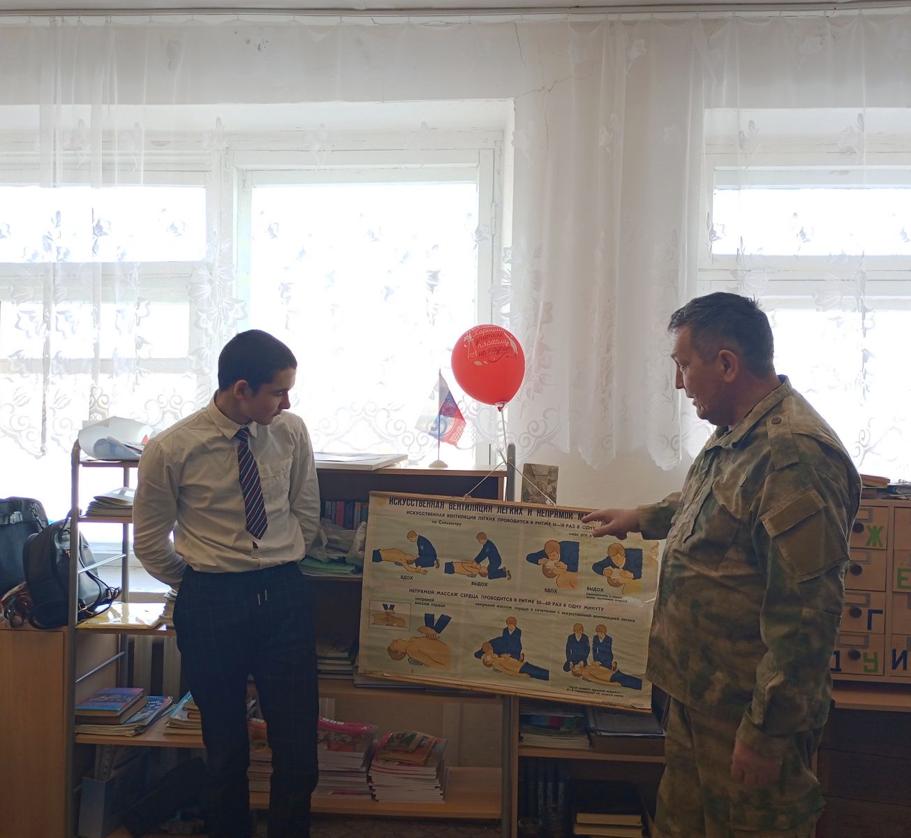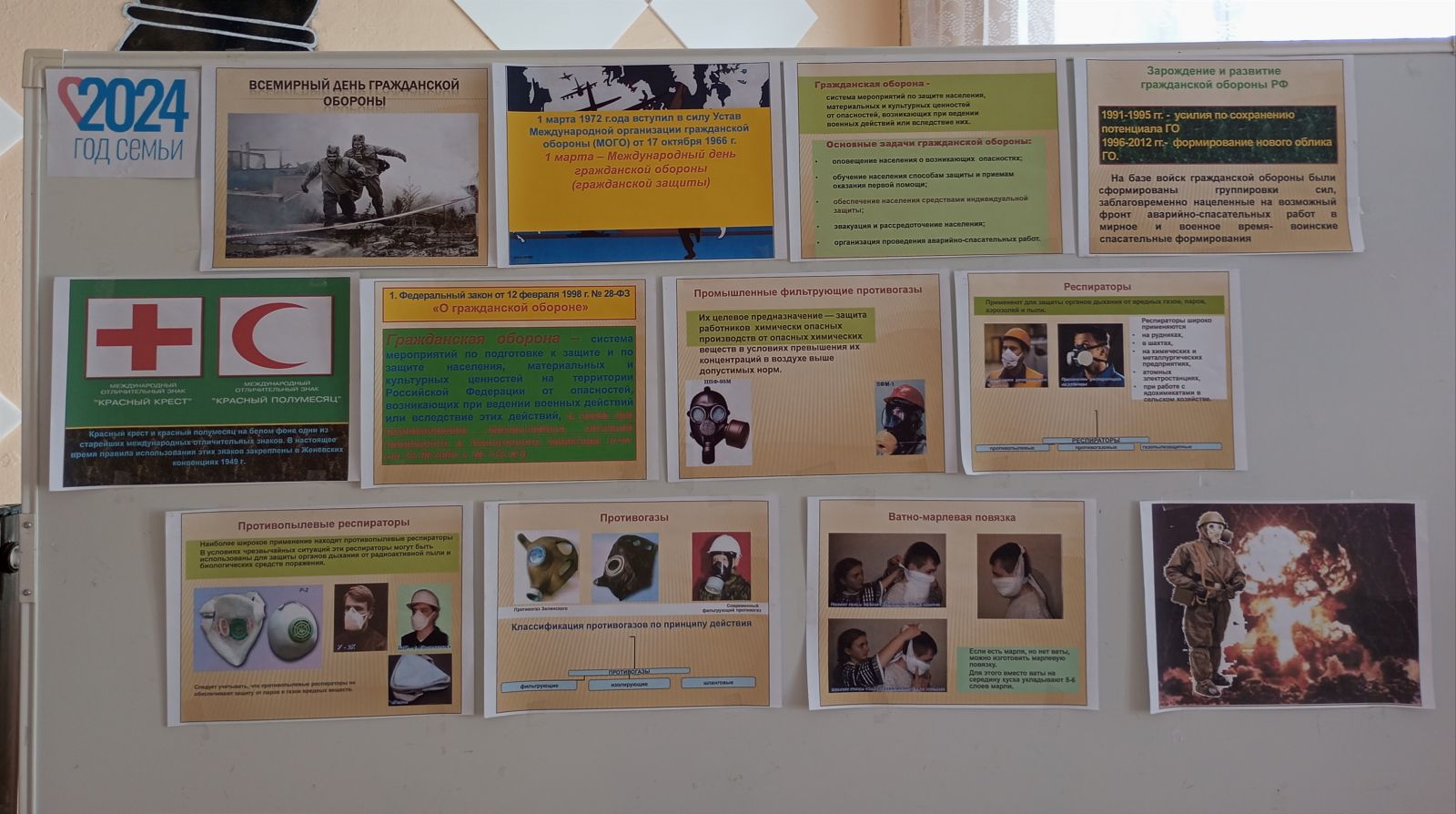 В рамках празднования Всемирного дня гражданской обороны, в нашей школе 1 марта, учитель ОБЖ Денисов Алексей Петрович оформил информационный стенд и провел урок, направленный на пропаганду среди обучающихся знаний по гражданской обороне, продемонстрировал правила оказания первой медицинской помощи.