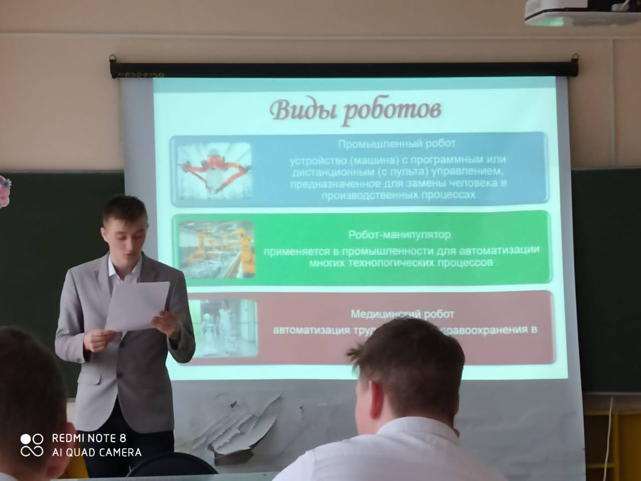 27 апреля в школе учащиеся 9 класса защитили свои проектные работы. Работы были из разных предметных областей. Один из учащихся смоделировал робота – манипулятора, благодаря оборудованию, которое поступило в рамках проека «Точка роста». Ребята угостились шоколадом, которая изготовила одна из учениц. Все учащиеся защитились и продемонстрировали свои продукты проектных работ. Поздравляем с еще одним пройденным этапом!