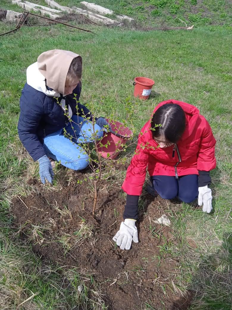 Учащиеся 10, 11 класса принимали участие в акции «Весенняя неделя добра» «Посади дерево». Ребятами на территории школы были посажены саженцы берез и рябин.