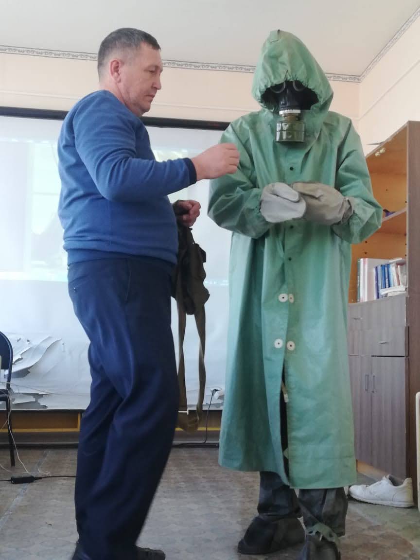 29 апреля в нашей школе были проведены уроки ОБЖ. В 8-11 классах урок ОБЖ был проведен преподавателем-организаторм ОБЖ Денисовым А.П. Ребята вспомнили правила пользования огнетушителями разного вида, вспомнили правила пользования противогазами. Научились надевать костюм. -