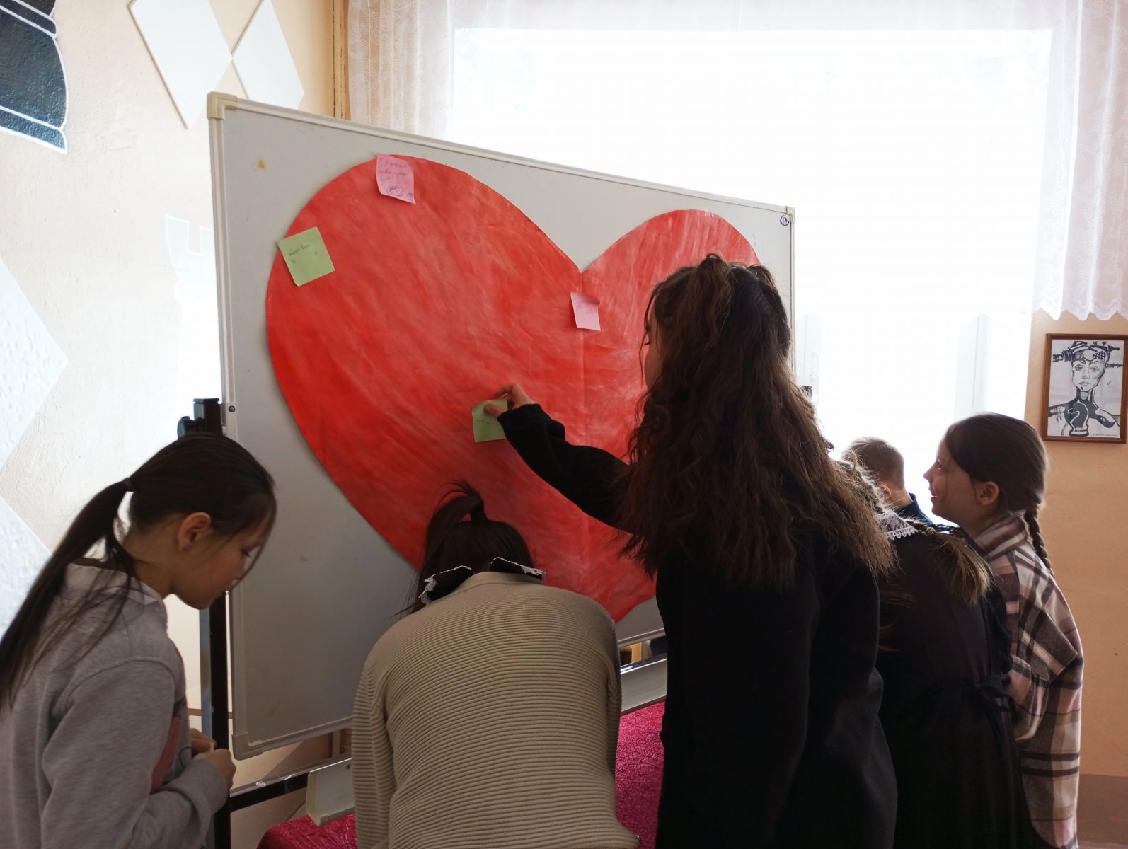 Добро и любовь — это человеческие качества, которые меняют мир в лучшую сторону. С каждым добрым поступком кому-то становится лучше и теплее, ведь мы делаем людей чуть счастливее, а это значит, что счастливее и добрее становится весь мир.14 февраля в нашей школе прошла акция «День добра и любви». Учащимся предложили написать приятные слова друзьям, одноклассникам, учителям и приклеить на стенд в форме сердца, в знак любви и уважения друг друга.