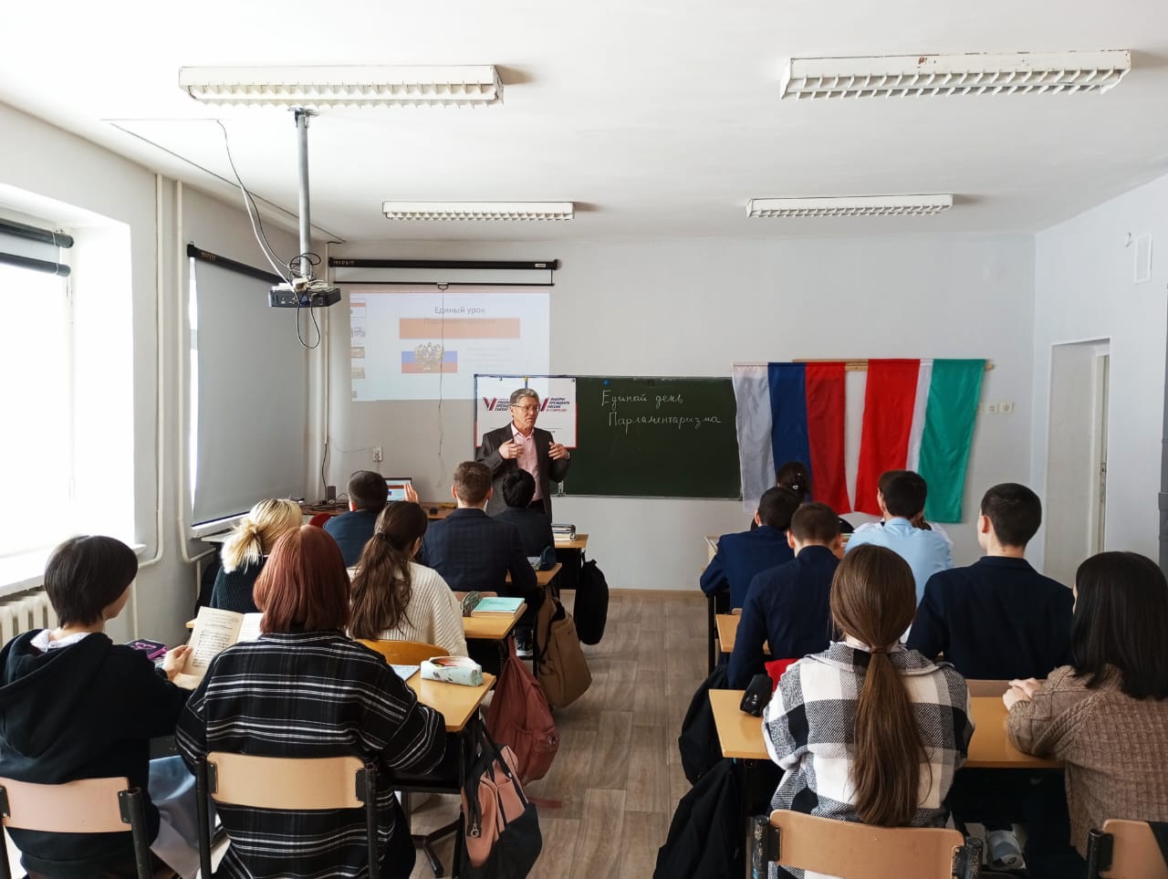 13 февраля учителями обществознания были проведены парламентские уроки, посвященные разъяснению основ избирательной системы Российской Федерации, на тему «Выбираем будущее!».