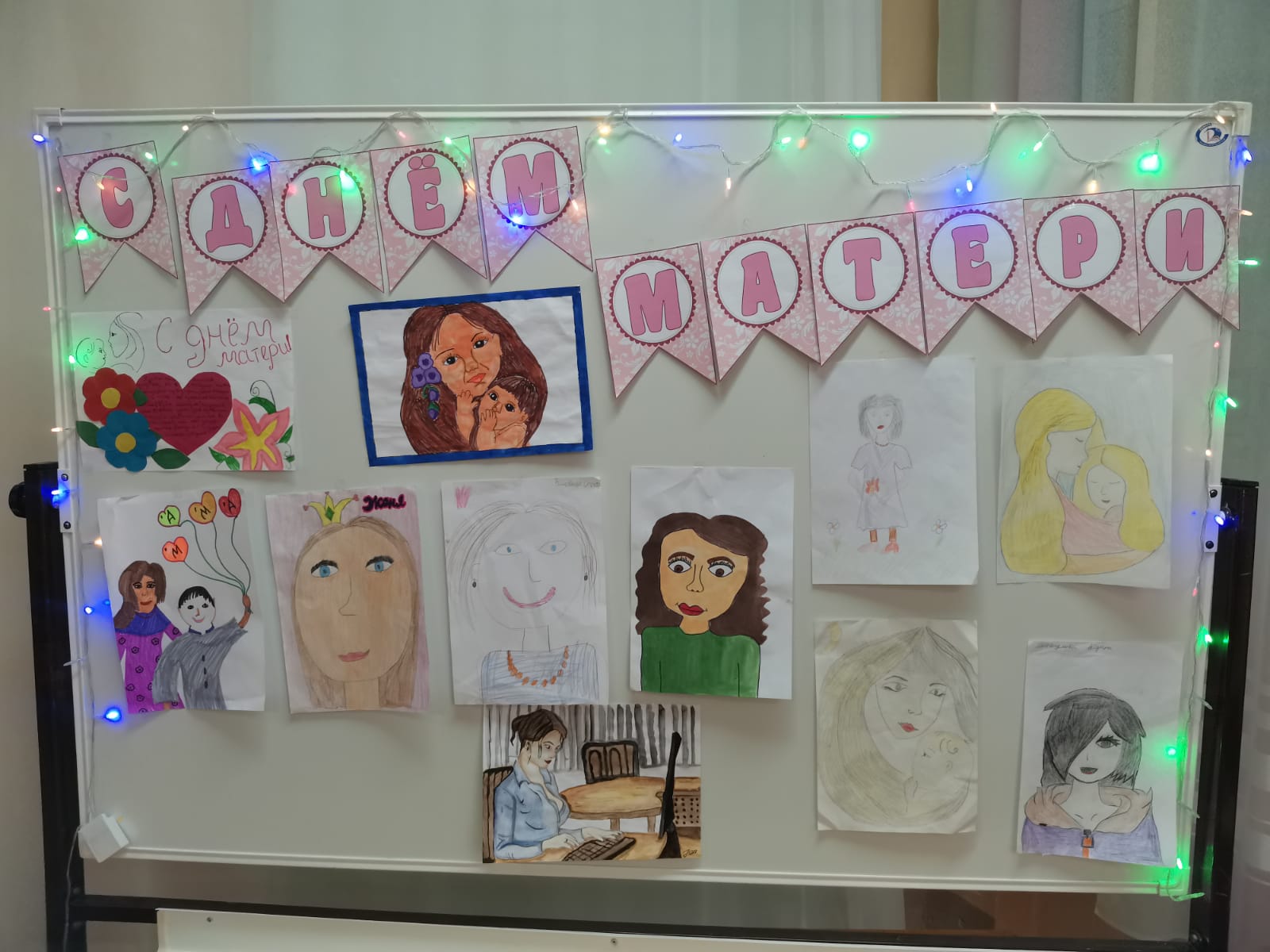 В нашей школе учащиеся начальных классов оформили выставку портретов своих мам. А участники школьного движения РДШ поздравили всех мам, которые работают в школе.