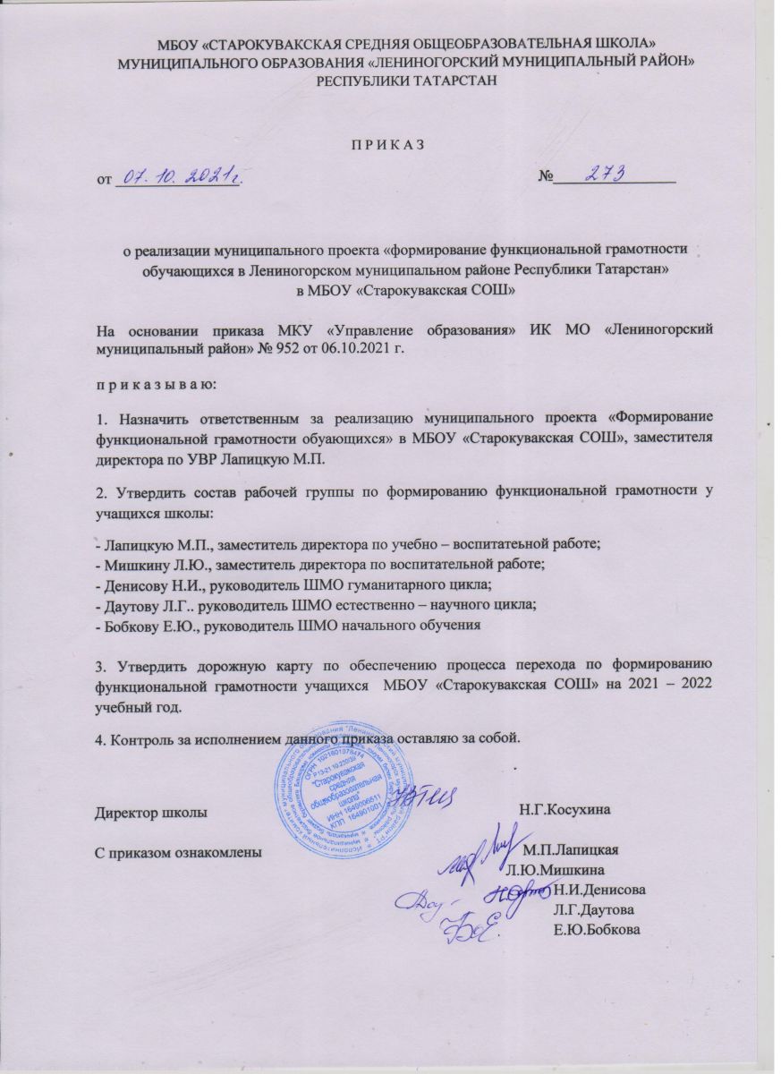 Приказ о реализации муниципального проекта "Формирование функциональной грамотности обучающихся"
