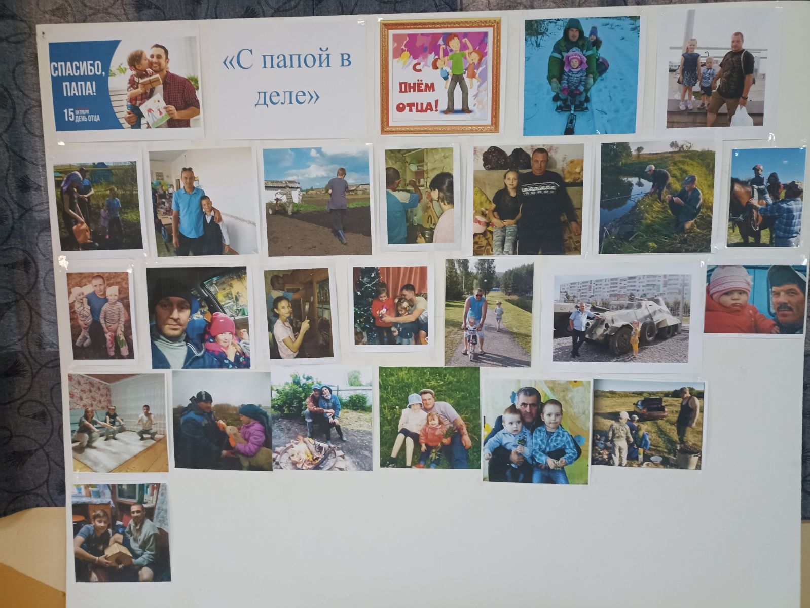 Советник директора по воспитанию 13 октября совместно с детьми оформили в фойе школы фото выставку «С папой в деле». В библиотеке состоялась книжная экспозиция и выступление ко Дню отца. 14 октября в фойе школы состоялась напоминание на общешкольной линейке для учеников о предстоящем воскресном празднике и его истории. Организована творческая мастерская где учащиеся школы изготовили поделки и открытки для своих пап. Провели интеллектуальную игру для пап «Папа учитель» где они показали всю свою смекалку, сноровку и интеллект. Так как наши сельские папы очень заняты, семейную спортивную игру «Папа может!» дети провели с семьей дома и предоставили нам фото отчет.