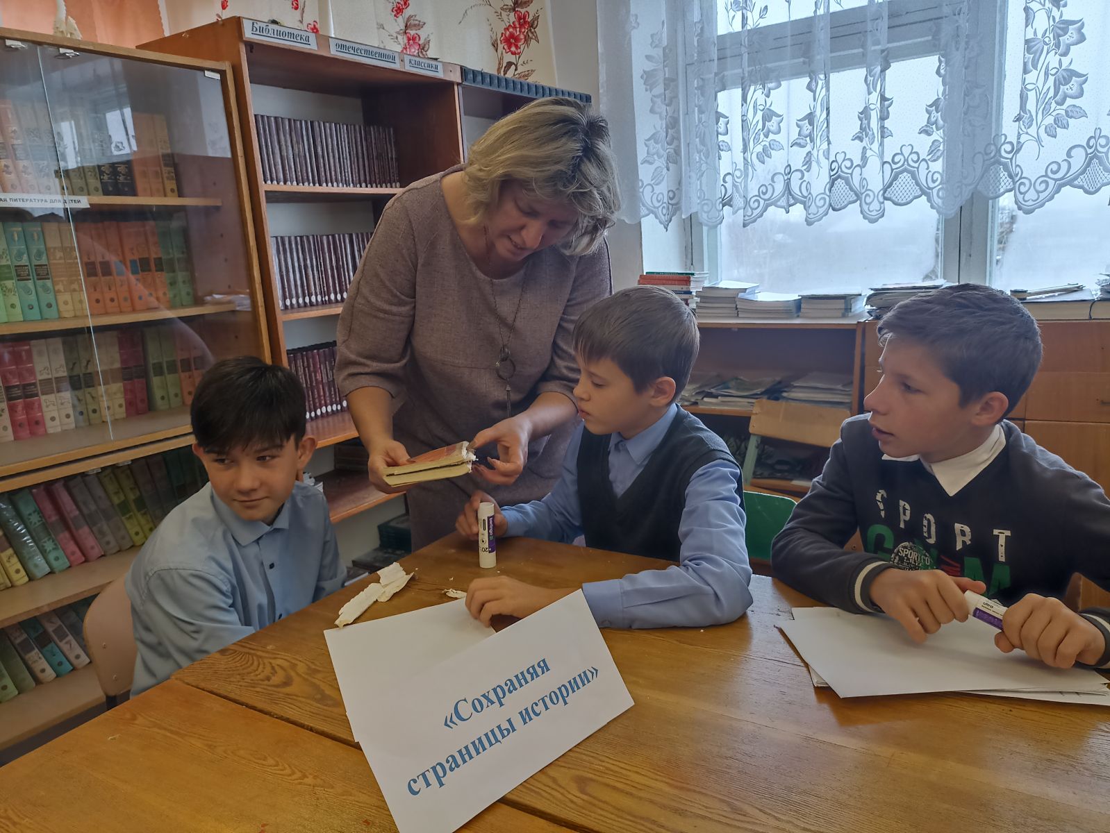 В школьной библиотеке провелись дебаты «Сохраняя страницы истории», на которых раскрывается тема бережного отношения к книгам. В ходе реализации акции ребята помогли школьной библиотеке привести в порядок ветхую художественную литературу. Обучающиеся 5-7классов подклеили книги, стирали ластиком пометки, выпрямляли страницы. Ребята помогали друг другу, подсказывали, как и что лучше сделать. Дети прочувствовали важность своей работы, потрудившись, пришли к выводу: книги надо беречь!