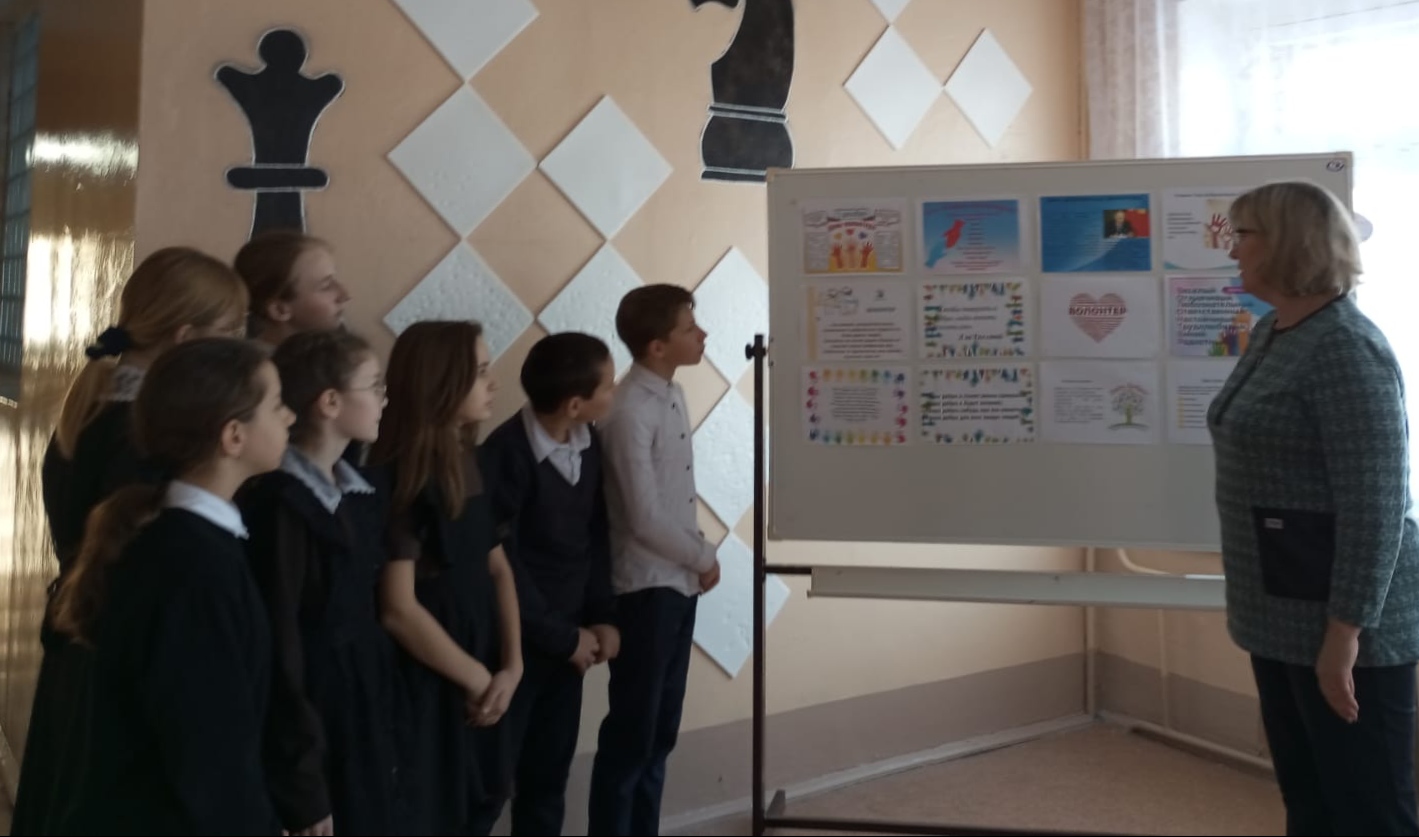 - Проведение внеурочных занятий Разговоры о важном на тему «Мы вместе», посвященные движению волонтеров.