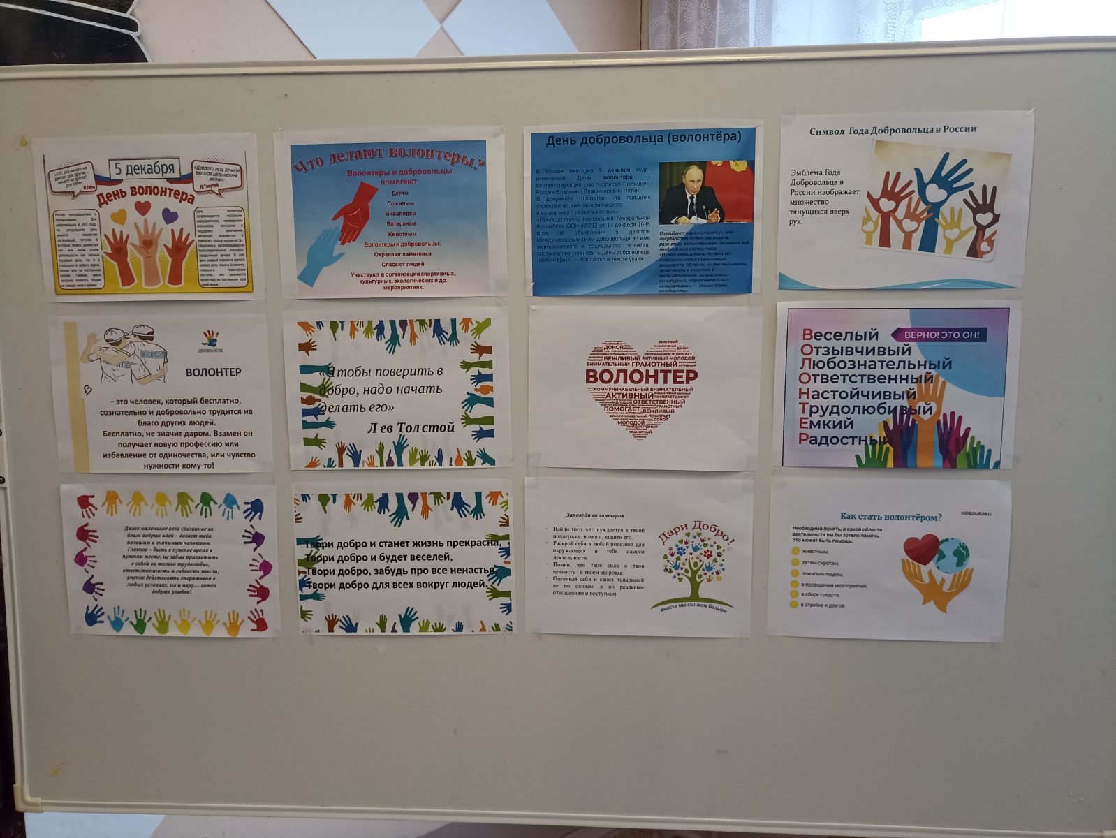 -оформление информационного стенда и проведение беседы на тему 5 декабря День добровольца (волонтёра) в Росси.