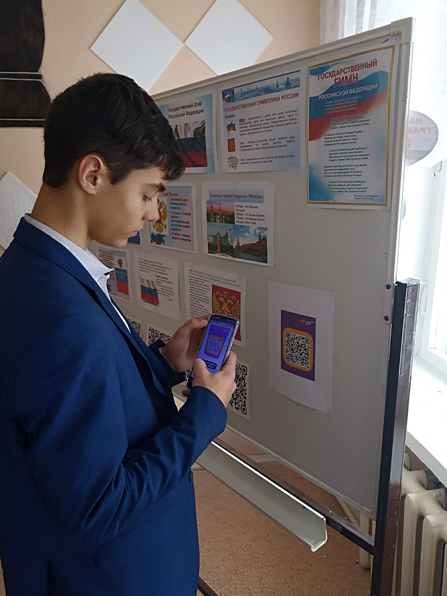 В рамках этой знаменательной даты советник директора по воспитанию провела интеллектуально-развлекательный QR-квест с 22 по 25 декабря. Участниками квеста стали обучающиеся 7-10 классов. QR-коды с зашифрованными вопросами находились в общедоступных местах школы. Задачей участников было отсканировать коды и правильно ответить на вопросы, вписать ответы в бланки и предоставить их советнику по воспитанию, проверить свои знания. Следующее мероприятие интеллектуальный марафон «Государственные символы России на основе которого учащиеся расширили представления об истории официальных символов страны (герб, гимн, флаг), отражающих её суверенитет, единство прошлого и настоящего российской государственности, историческую самобытность нации, объединяющего начала государства для всех граждан.