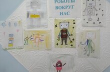 Беседа наша завершилась изображением роботов на альбомных листах. В итоге получилась отличная выставка из разных роботов.