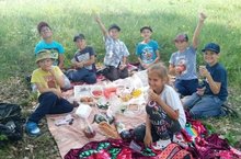 Маршрут выбран. Но все знают, что перед выходом нужно вспомнить правила поведения в походе, на природе. Все инструкции получены, инструктаж пройден и после завтрака «Лучики» в полной готовности выдвинулись в путь. Вот через каких-то пол часа они добрались до места отдыха. Разложили пледы и побежали на луг лакомиться последними годками. В это время группа ребят на пригорке под белоствольной березкой накрыла туристическую поляну с едой. На природе еда имеет особенный вкус. Природа, голоса птиц, и конечно же, игры на свежем воздухе, где нет никаких рамок полета мяча.