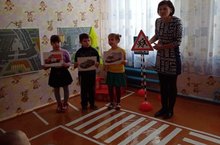 В средне - старшей группе прошло познавательно - развлекательное занятие "Сказка про потерянные знаки". Цель: расширить и закрепить знания детей о сигналах светофора и правилах дорожного движения;- познакомить со знаками дорожного движения;- воспитывать культуру поведения на улице, вырабатывая потребность в соблюдении правил дорожного движения