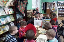 Дети средне – старшей группы посетили сельскую библиотеку, в которой прошло театрализованное представление «Пасхальная сказка о капризной царевне». Также дети вместе с ребятами «Старописьмянской СОШ» отвечали на вопросы викторины по сказкам, отгадывали загадки, участвовали в театрализацции