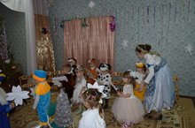 Новый год – время исполнения заветных желаний и для малышей ожидание новогоднего праздника связано с предвкушением волшебства от встречи с Дедом Морозом и Снегурочкой. Атмосфера праздника царила в детском саду весь день, и проведённые утренники окунули всех в сказку. К малышам приходили Медведь, Кот-Баюн, Баба Яга , которые хотели вместе со всеми встречать Новый год и веселили всех играми и забавами. И, конечно, кульминацией утренников была встреча с главными героями праздника – Дедом Морозом и Снегурочкой, для которых малыши с особым удовольствием пели, читали стихи и танцевали.