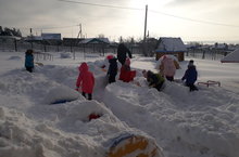 Выпал первый обильный снег и мы слепили первых снеговиков.
