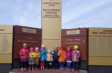 До начала митинга воспитанники детского сада возложили цветы к монументу ВОВ.