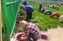 Силами сотрудников на территории детского сада сегодня посадили семена цветов.