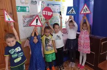 Занятие основано на ознакомление детей с предупреждающими, указательными, запрещающими дорожными знаками. Учить различать знаки, расширять знания о назначении предупреждающих дорожных знаков, адресованных водителям, формировать навыки безопасного поведения на дороге./ Дәрес балаларны кисәтүче, күрсәткеч, тыючы юл билгеләре белән таныштыруга нигезләнә. Билгеләрне аера белергә, машина йөртүчеләргә юл билгеләренең билгеләнеше турында белемнәрне киңәйтергә, юлда куркынычсызлык күнекмәләрен формалаштырырга өйрәтә.