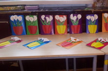 Из ватных дисков, палочек, картона и цветной бумаги дети сделали своими руками подаррок маме.