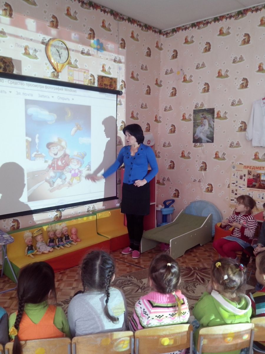 Занятие с использованием мультимедийной презентации «Я и дорога» и просмотр мультфильма «Азбука безопасности на дороге»