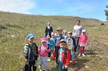После долгих обучений инструктажей, бесед по безопасному поведению на природе мы собрались и пошли в поход. Поход наш был не простым: мы шли по дороге соблюдая правила дорожного движения держась за руки, поднимались на гору, спускались по склону горы, самым интересным и увлекающим для нас был привал, где мы развернули перекус. Мы бегали, играли, рассматривали муравейники. С горы было видно все наше село как на ладошке. Затем отправились обратно в садик. Озак вакыт инструктажлар, табигатьтә куркынычсыз кагыйдәләрен өйрәнүләрдән соң без җыенып походка киттек. Безнең поход гади түгел иде: без юл йөрү кагыйдәләрен үтәп, кулга кул тотынып, тауга мендек, тау итәгенә төштек, безнең өчен иң кызыклы һәм мавыктыргыч тукталыш өстәл корып ашау оештыру иде. Тауда без йөгердек, уйнадык, кырмыскалар оясын карадык. Таудан безнең бөтен авылны уч төбендәге кебек күреп була иде. Аннары бакчага кайтып киттек.