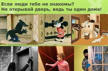 В рамках Дня охраны труда в детском саду проведена беседа с детьми на тему «Научись себя охранять». Детям было рассказано, как надо вести себя на улице: не уходить с незнакомыми людьми, нельзя гулять одному, убегать из дома, нельзя гладить чужую собаку и т. д. Прочитали сказку «Волк и семеро козлят», рассматривали картинки, обсудили с детьми вопросы по содержанию сказки.