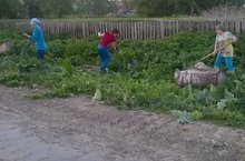 После рабочего дня сотрудники ДОУ вышли на укос крапивы вдоль территории села для подготовки к Сабантую.