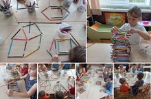 Развитие пространтвенного мышления, конструирования и мелкой моторики, творческого мышления. Цветные карандаши отличный способ не только для рисования, но и для конструирования и развития мелкой моторики. Ребята с удовольствием строили из них воздушные замки, интересные конструкции и поучаствовали в конкурсе среди сверстников в группе на лучший домик из карандашей./ Киң фикер йөртү, дизайн һәм яхшы мотор осталыгы, иҗади фикерләү үсеше. Төсле карандашлар рәсем ясау өчен генә түгел, яхшы моторик осталыкны проектлау һәм үстерү өчен дә бик яхшы ысул. Балалар рәхәтләнеп әкияти сарайлар, кызыклы конструкцияләр төзеделәр һәм карандашлардан иң яхшы йортка төркемдәге яшьтәшләр арасында конкурста катнаштылар.