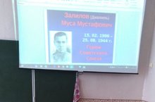 Классное занятие, посвященное Мусе Джалилю, было проведено с учащимися 1 и 3 классов. Дети посмотрели презентацию о герое-поэте. Потом читали стихи Джалиля.