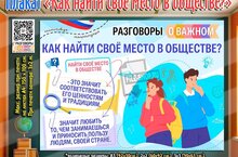 Сегодня, 4 марта, в нашей школе, как и по всей нашей стране, организованы разговоры о важном на тему: "Найти свое место в обществе". Целью занятия является: формирование ценностного отношения обучающихся к самореализации в обществе; формирование чувства ответственности за развитие востребованных навыков: общение, решение проблем, творческое и критическое мышление; формирование и развитие навыков эмпатии: заботы о других, желания быть полезным для других людей, для общества, для нашей страны.