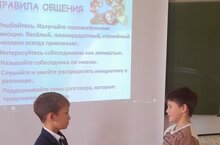 С учениками 4 класса провели занятие по теме: «Правила общения». Целью занятия является мотивация детей к самопознанию и познанию других людей, пробуждение интереса к внутреннему миру другого человека, распознавание эмоционального состояния по мимике, жестам, голосу. Занятие прошло в игровой форме.