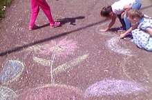В пришкольном лагере «Улыбка» был проведен конкурс рисунков на асфальте «Я рисую пришкольный лагерь». 25.07.2015