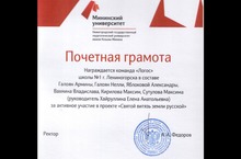 Участие во Всероссийском проекте Команда "Логос" в составе: Яблокова Александра, Галоян Армина, Галоян Нелли, Кирилов Максим, Сутулов Максим, Вахнин Владислав (все учащиеся 8 класса), руководитель учитель истории и обществознания Хайруллина Е.А. приняла активное участие во всероссийском проекте «Святой земли русской», посвященный Александру Невскому на образовательном портале летопись.ру, в рамках проекта «300 ИнтелШкол-2013», программы Intel «Обучение для будущего». 10.01.2014