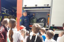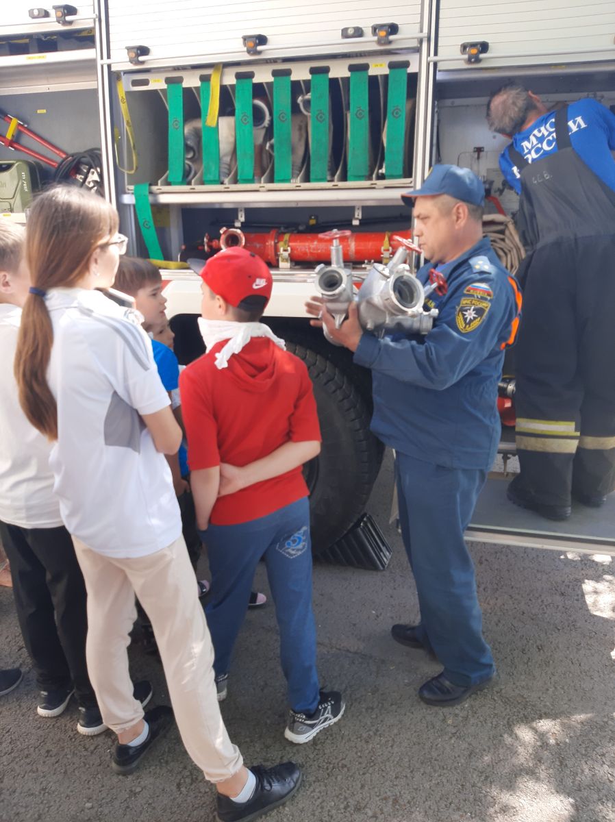 Сегодня в пришкольном лагере « Лукоморье» прошла экскурсия по отработке навыков по пожарной безопасности. Воспитанники прослушали беседу о комплектации пожарной машины, одевали каски, противогазы. Поближе познакомились с работой пожарных. Все очень понравилось, ребята были в восторге. Многие из них захотели в будущем свою жизнь связать с работой пожарного.