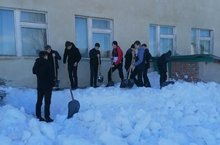 06.04.2021 учащиеся 9 класса вместе с классным руководителем провели очистку территории школы от снега.