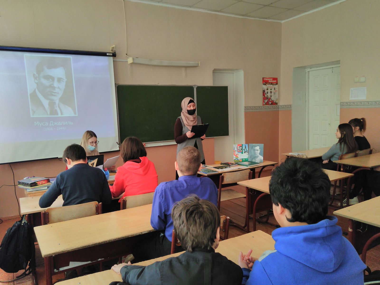 Учитель родного (татарского) языка и литературы Гарифуллина Г.М. в 8 и 9 классах провела викторину посвященное герою-поэту татарского народа М. Джалилю «Муса Джалиль в наших сердцах». Учащиеся отвечали на вопросы, касающиеся детства поэта, семьи, творчества, в плену и Маобитских тетрадей. 1 место заняли учащиеся 9 класса, набрав 18 баллов; 2 место учащиеся 8 класса, набрав 12 баллов.
