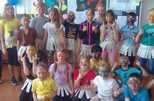 Сегодня в лагере прошла игра «Бенефис Бабы-Яги». Ребята готовили костюмы, участвовали в конкурсах «Заклинание», «Костюм для Бабы-Яги», «Следы нечистой силы», « Лучший проект для Бабы-Яги». Игра закончилась награждением победителей. После окончания мероприятия провели игры на свежем воздухе «В кругу друзей» -