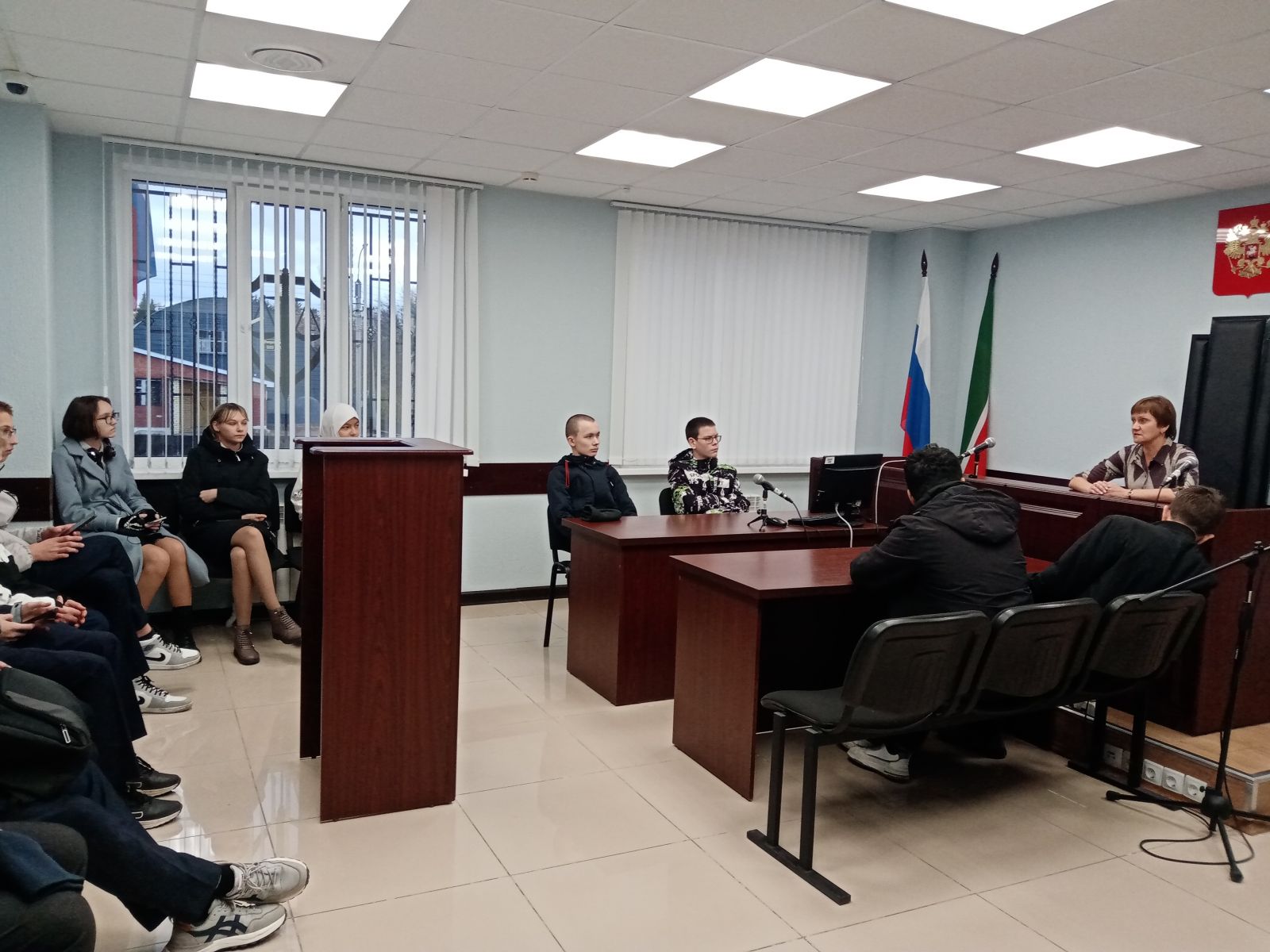 18.10.2023 в рамках профминимума "Россия - мои горизонты", учащиеся 8 и 9 класса школы №1 посетили Лениногорский городской суд.