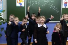 В 1 классе (классный руководитель Сивачева Н.В.) прошел урок доброты. Дети вспомнили мультфильмы, где добро побеждает зло. И решили, что всегда нужно относиться по-доброму, уважать старших, помогать младшим, хорошо относится к одноклассникам. -