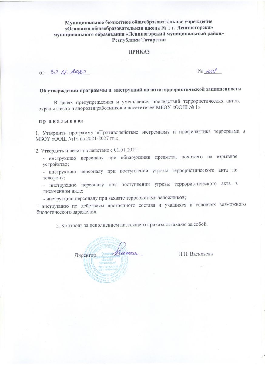 Приказ "Об утверждении программы и инструкций по антитеррористической защищенности"