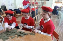 Юнармейцы нашей школы активно плетут для участников СВО маскировочные сети (руководитель Димиева Э. А.).