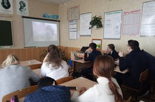5 марта в 9б классе прошел классный час на тему «Ломоносовский обоз. Грозный. Крым 75». Классный руководитель ознакомила девятиклассников с проектом, посвященным 75-летию Победы