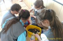 В рамках весенней недели добра обучающиеся 5 в класса под руководством классного руководителя посадили рассаду цветов в подарок любимой школе