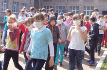 После сигнала тревоги были проведены календарно-штабные учения: учащиеся в повязках выбегали за территорию школы, собрались на построение, а затем участвовали в коллективных многоборьях. В 5А было проведено троеборье: отжимание, упражнение на пресс и прыжки со скакалкой. Дети с удовольствием соревнованились в силе и ловкости с другими классами.