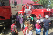 24 июля пришкольный лагерь побывал в пожарной части. С детьми провели беседу, показали как кипит жизнь у пожарных, рассказали о возможностях пожарных машин. После обеда был проведен конкурс рисунков по теме: "100 летие первой мировой войне". -
